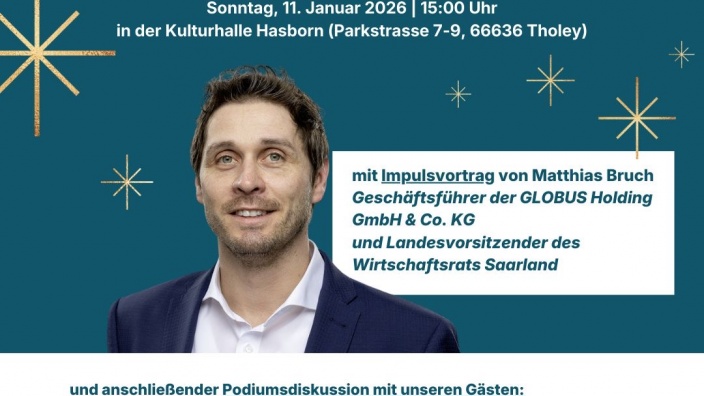 23.12.2025 Neujahrsempfang 2026 - Einladung Gemeinsam ins Jahr 2026: Neujahrsempfang der CDU Kreis St. Wendel mit Impulsvortrag, Diskussion und Gästen aus Wirtschaft & Politik.