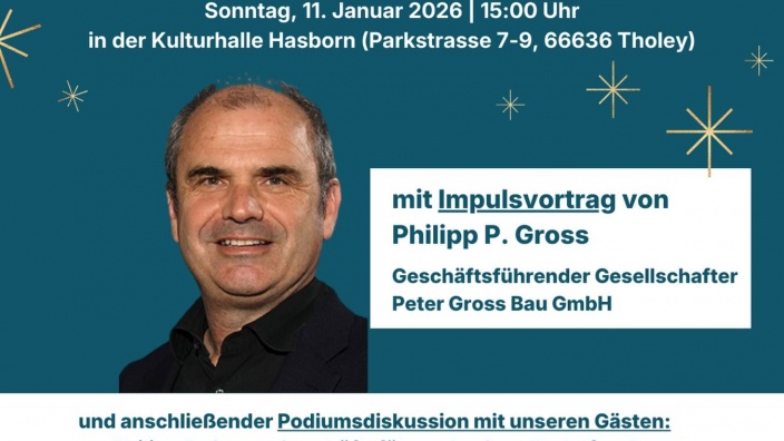 23.12.2025 Neujahrsempfang 2026 - Einladung Gemeinsam ins Jahr 2026: Neujahrsempfang der CDU Kreis St. Wendel mit Impulsvortrag, Diskussion und Gästen aus Wirtschaft & Politik.
